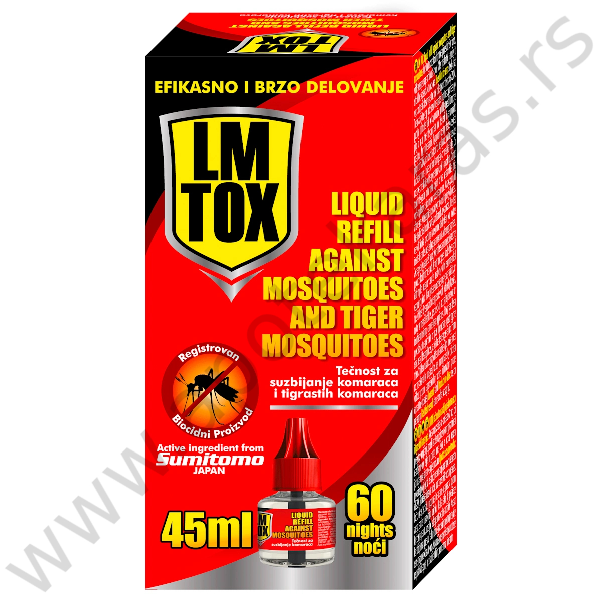 LMX TOX tečni refil za električni aparat idealan je za suzbijanje komaraca i tigrastih komaraca. Zahvaljujući novoj formuli koja traje i 60 noći, pri prosečnoj upotrebi od 8 sati, omogućuje konstantnu zaštitu od komaraca, pri otvorenim prozorima i osvetljenim prostorijama. Uživajte u toplim letnjim noćima bez dosadnih komaraca!