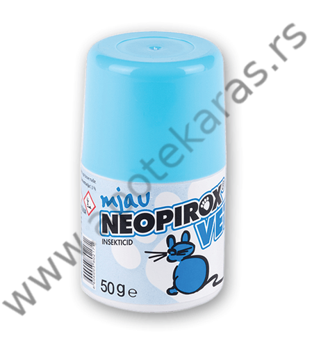Neopirox Vet za mačke je prah za suzbijanje insekata (buva i krpelja) na površinama – u zatvorenim i otvorenim prostorima, gde mačke borave. Vrlo je jednostavan za nanošenje i potpuno je bezbedan po kućne ljubimce.